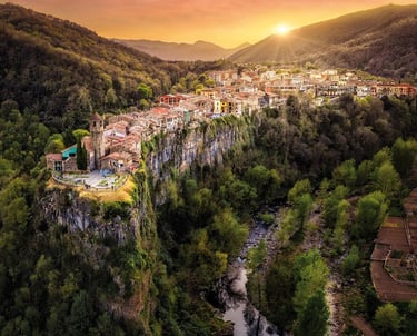 Un pueblo sobre un impresionante risco basáltico.